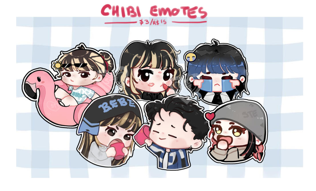 Flat color and fully rendered options, also cute chibi emojis (can be customized and used for Discord Servers, just let me know first, thanks)